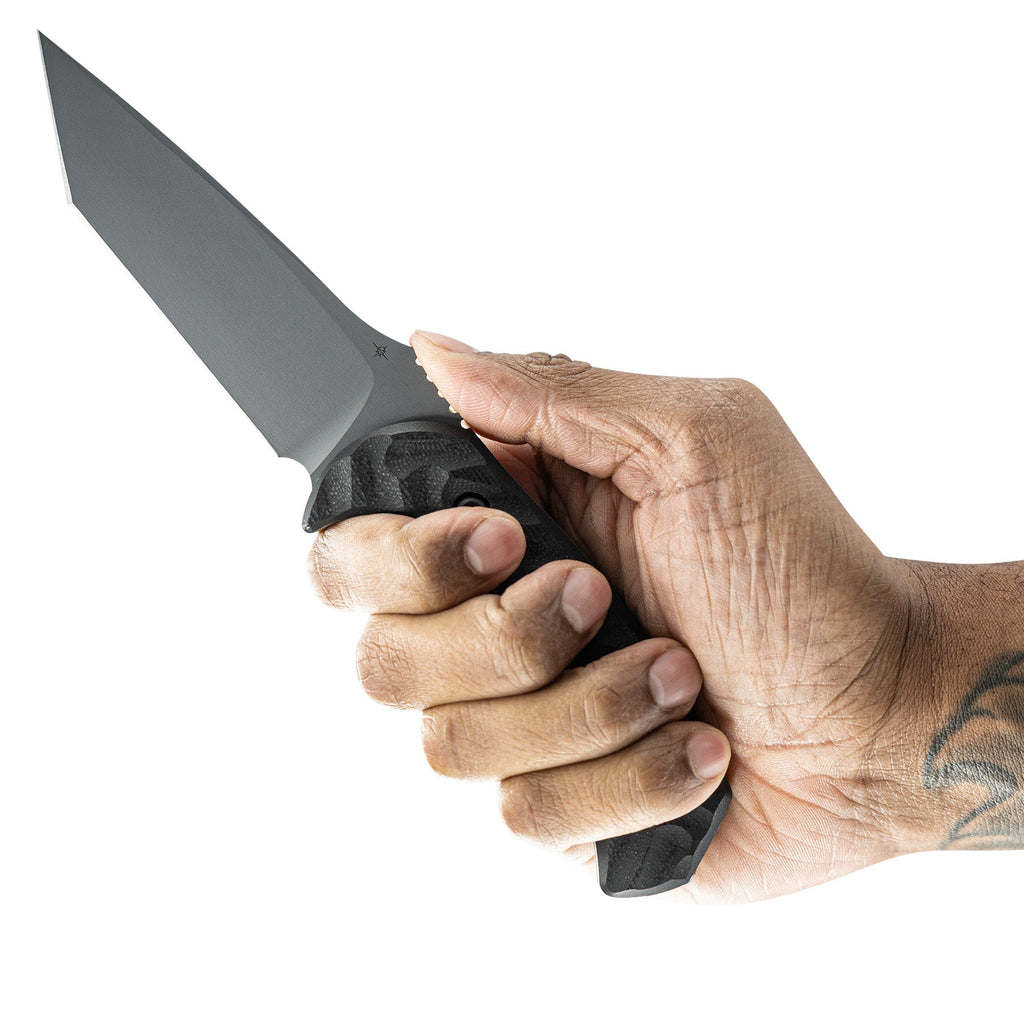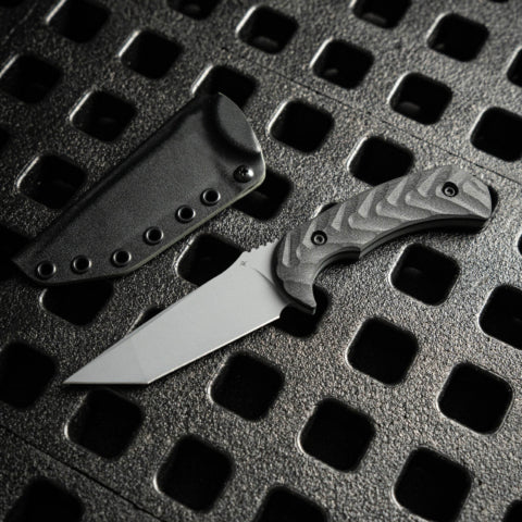 Crafted from high-quality CPM M4 steel, the Mullet T boasts a short Tanto grind that enhances the blade's strength and reduces resistance when penetrating tough surfaces. With an overall length of 8.5 inches, a weight of 7.5 ounces, and a blade thickness of 0.1875 inches, it perfectly fills the gap in our collection as a midsized option, slightly larger and heavier than our Krypteia model. The knife is equipped with durable G10 handles featuring Toor Knives' signature texture, designed to provide a secure and comfortable grip with ample flutes for added control, ensuring excellent performance in any condition.