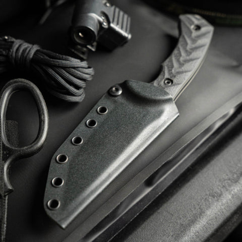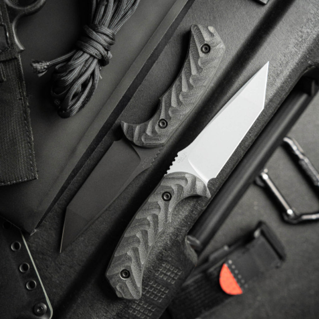 Crafted from high-quality CPM M4 steel, the Mullet T boasts a short Tanto grind that enhances the blade's strength and reduces resistance when penetrating tough surfaces. With an overall length of 8.5 inches, a weight of 7.5 ounces, and a blade thickness of 0.1875 inches, it perfectly fills the gap in our collection as a midsized option, slightly larger and heavier than our Krypteia model. The knife is equipped with durable G10 handles featuring Toor Knives' signature texture, designed to provide a secure and comfortable grip with ample flutes for added control, ensuring excellent performance in any condition.