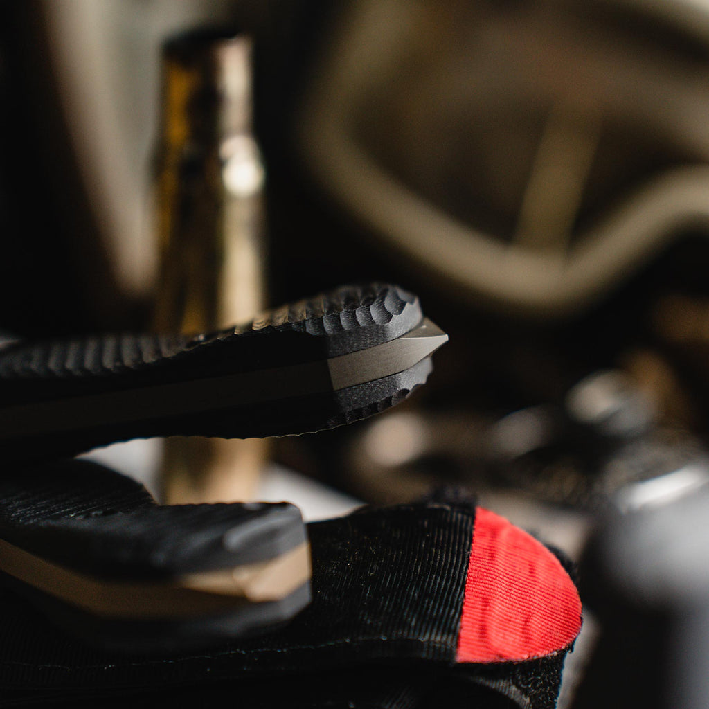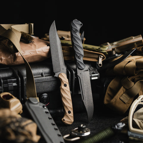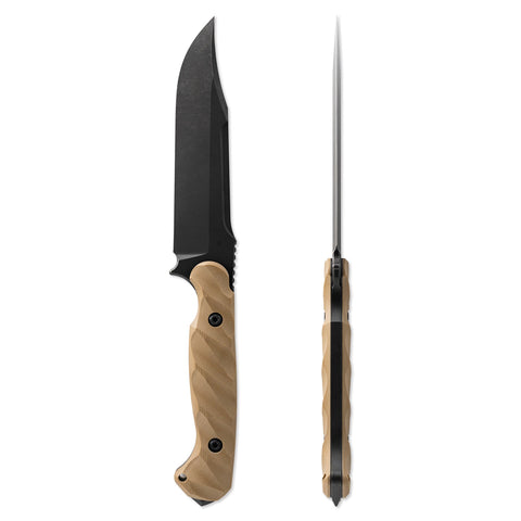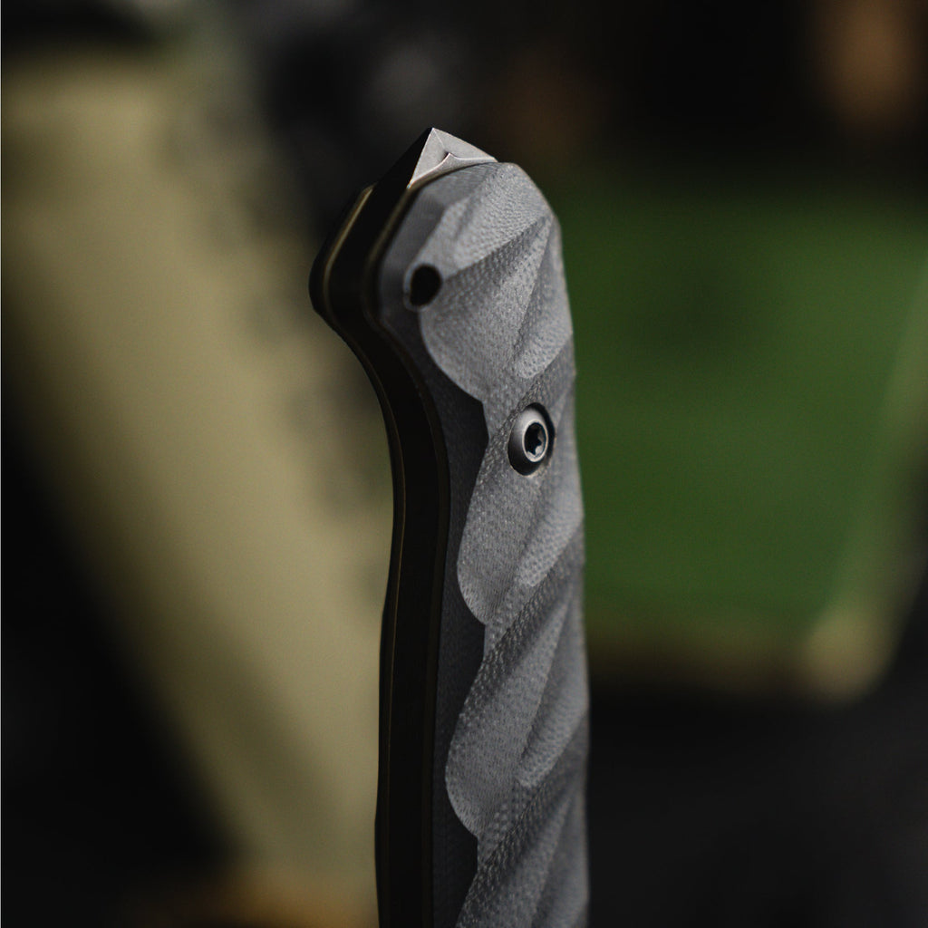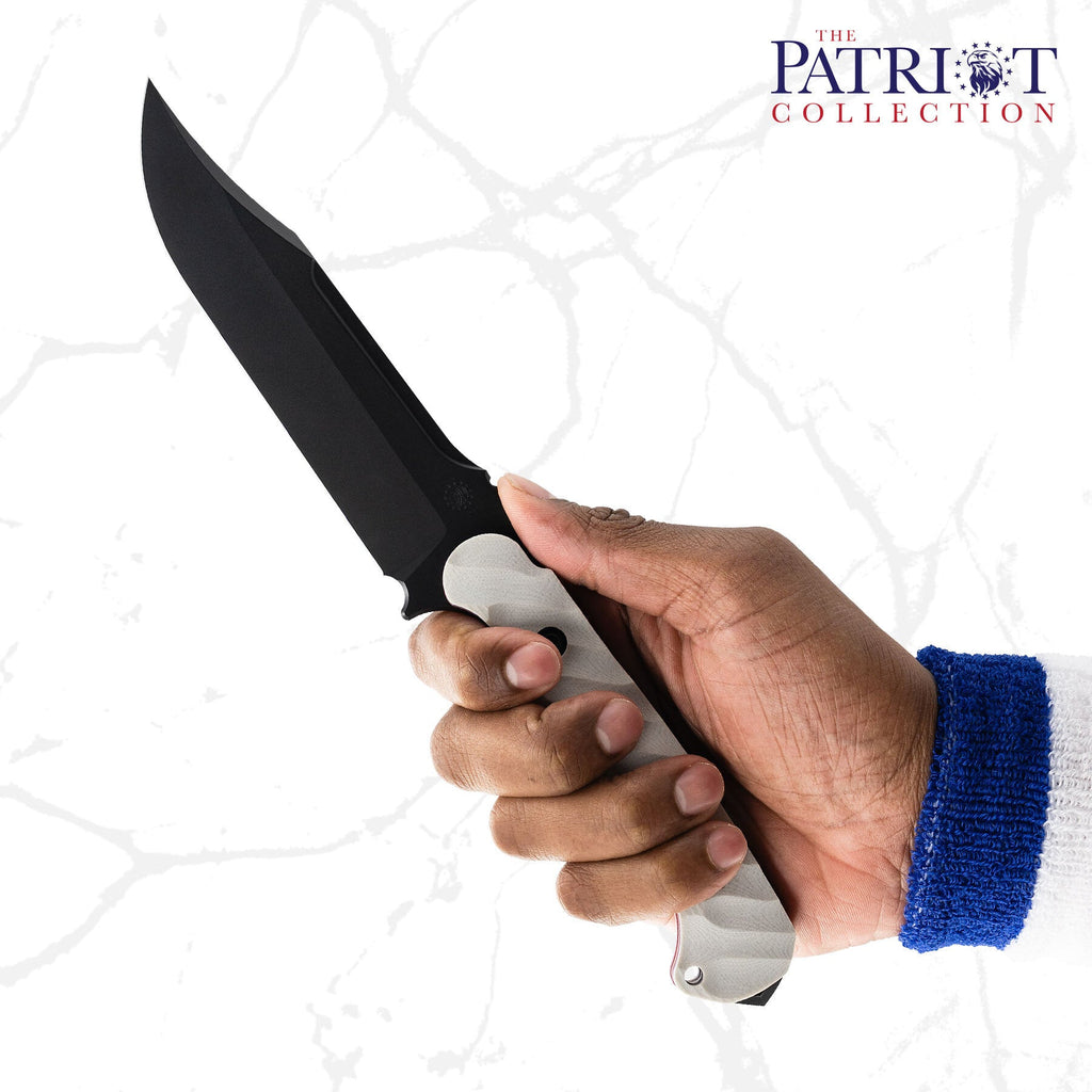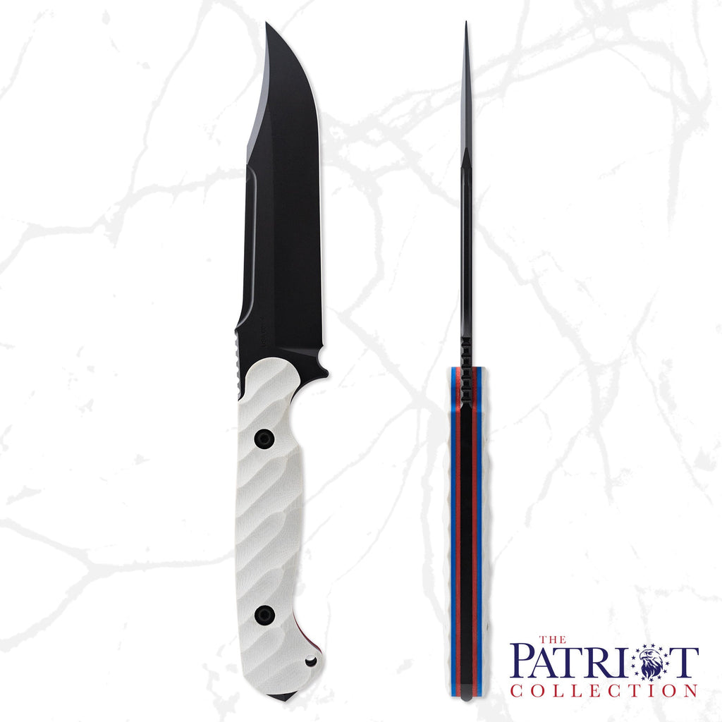 With an overall length of 10.875”, a blade thickness of 0.1875” and weighing in at 9.3 oz, the Valor makes for an incredibly durable, effective and versatile tool in the field. The Valor is designed with our War Wedge™ breaker on the back of the knife for blunt force when breaching or splitting. The G10 handle is carved in a 3D radial pattern, creating a belly in the center portion to add mass to the overall grip.