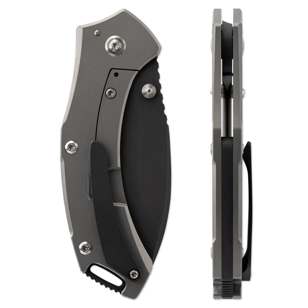 The XT1 is finished with all titanium hardware, an individual serial number, and a steel type engraving on each blade, securing its exclusivity in each limited batch we produce.